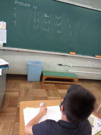 算数では,平行四辺形の条件を覚えようと練習中です。