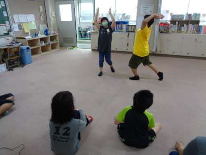 なかよし体育では準備体操の後,堺っ子体操を踊りました。