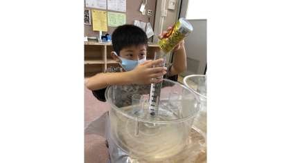 予想は,1デシリットル(100ミリリットル)でしたが,結果は,2デシリットル(200ミリリットル)で,びっくりしていました!