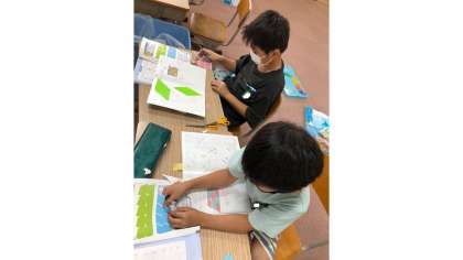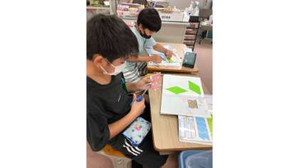 巻末の色板を使って,いろいろな四角形をノートに敷き詰めていきました。