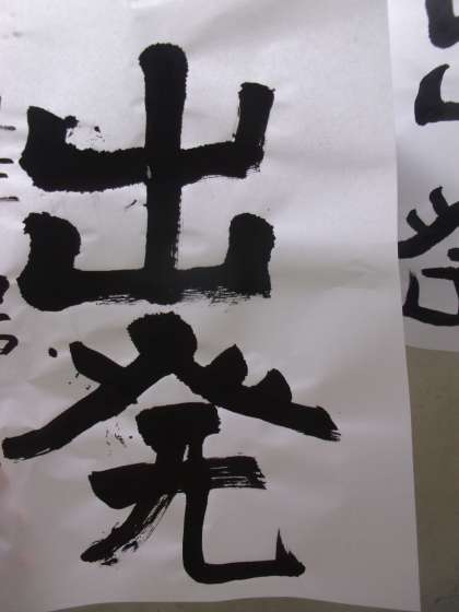 「出発」を書きました。画数とバランスを考えながら取り組みました。