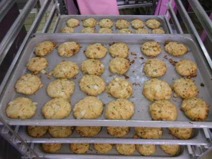オーブンに入れて焼いて、おいしい豆腐ハンバーグのできあがりです。