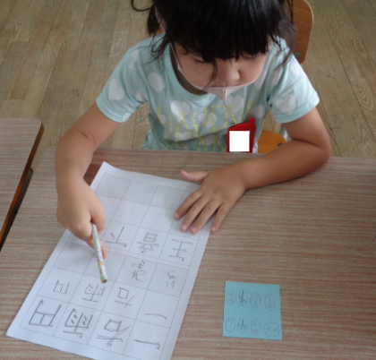 選択肢の中から読み方を選ぶ練習をしました。選んだ選択肢を消しながら、集中して学習していました。