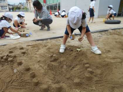 お団子を作ったりお城を作っている子もいて,