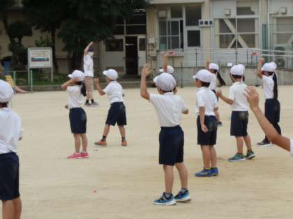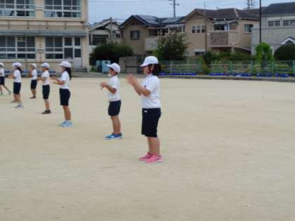 手拍子のリズムが揃うよう何度も全体で練習していました。