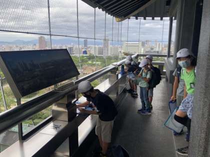 始めに階段で屋上へ上り、大阪市の景色を堪能しました!