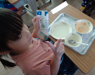 給食当番では牛乳係を頑張っています。