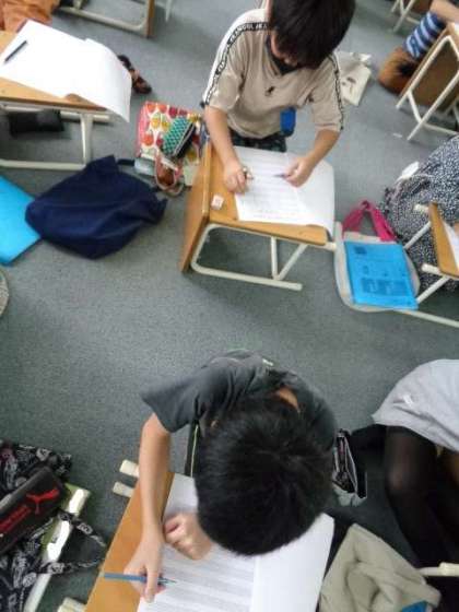 音楽では,五線譜に小節を区切る線を書く練習をしました。