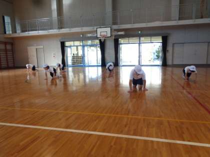 体を動かすトレーニングをした後は,体育大会に向けて走り方やスタートの練習をしました。