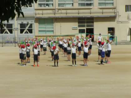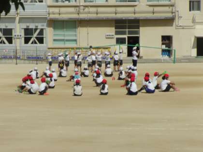 体育参観の団体演技の練習も終盤に差し掛かっています。今日は退場まで外で実際に取り組みました。