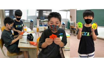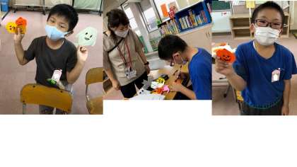 休み時間などに,なかよしタイムで作り終わらなかった「ジャック・オ・ランタン」の製作の続きをしました。
