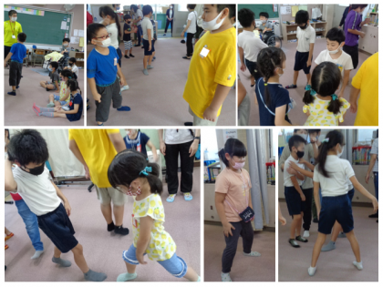 体験のお友だちも来て、「足じゃんけん」ゲームのスタートです。