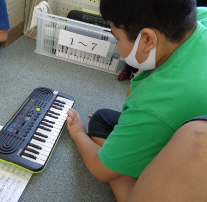 キーボードで演奏しました。リズムについていけるようになってきました。