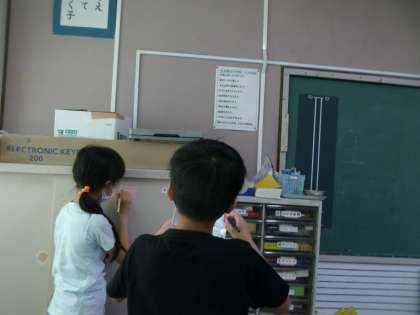 「よりよい学校生活のために」の学習で,東浅香山10の約束から課題を考えました。課題を決めて,解決策と理由を付箋に書きました。