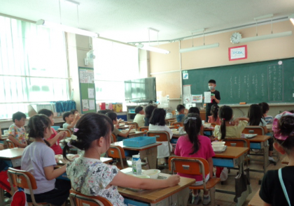 靴を揃えましょうと各クラスに呼びかけに行っていました。