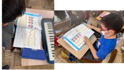 新しい曲「かねがなる」を聴いて,楽しそうに歌っていました!