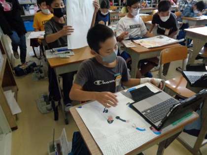 今日の図工では,描きたい絵のイメージをタブレットで調べる活動をしました。