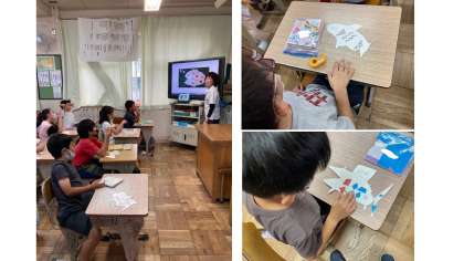 今日は,そこに折り紙を裏側から貼りました。