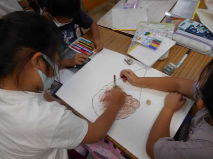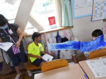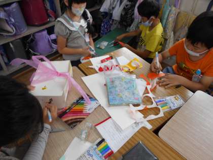 音読げきの練習が進み,小道具を用意する班がでてきました。水の中を表現したり,アイスクリームを作ったり,小道具があるとより一層げきが面白くなりそうです。