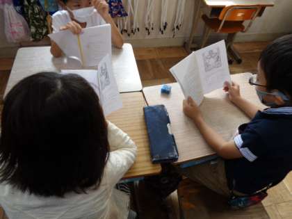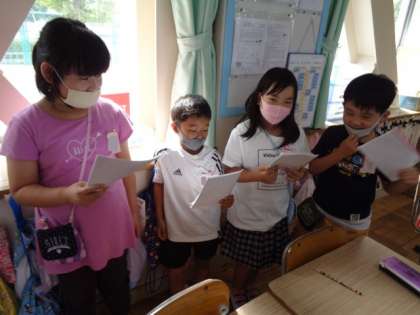 役になりきって身振りをしたり,少し間をあけて読んだりと工夫して楽しんでいます。