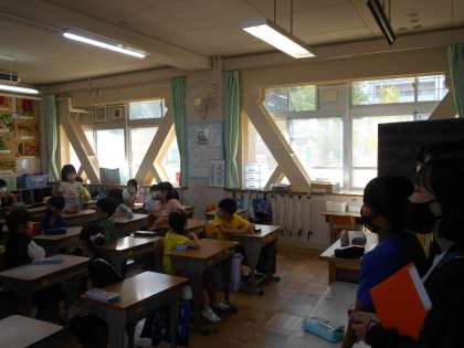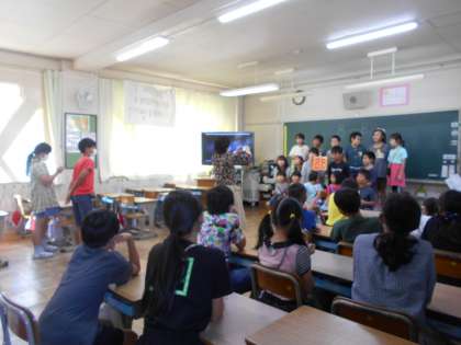 2年生になって初めての交流タイムでした。自己紹介や写真撮影をして,6年生が考えてくれたゲームで楽しく遊びました。