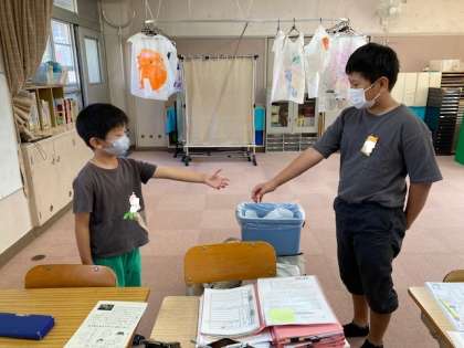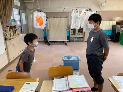 初めていっしょに学習するので,自己紹介をして,エア握手をしました。