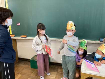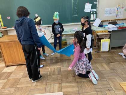 今日は,リハーサルのリハーサルで,お面をかぶり,動きをつけて,練習をがんばっていました!