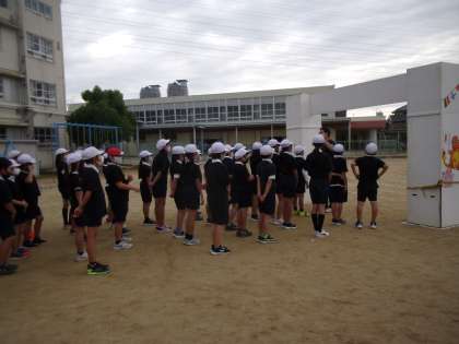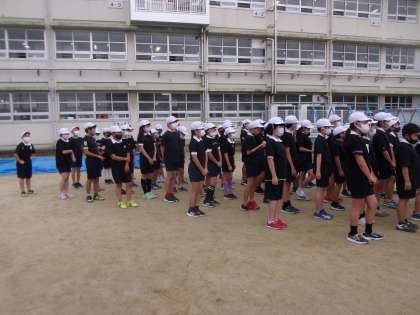 エイサーの最後の部分だけ踊り,残りの時間は,徒競走の並び順と自分のコースを歩いて確認していました。