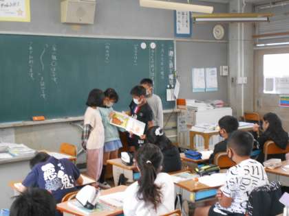 役によって声を変えたり,ページによって読む人を変えたりして工夫しています。
