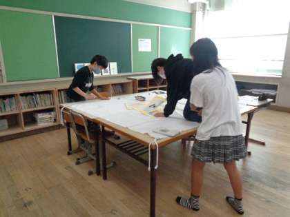 体育参観に向けて,大漁旗づくりを休み時間にしてくれています。