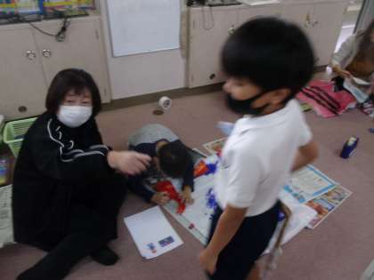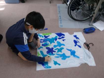 ハロウィンパーティーに向けての仮装づくりも終盤に差し掛かりました。自分で工夫したり,先生たちからアドバイスをもらったり,どんどん出来上がっていきました。