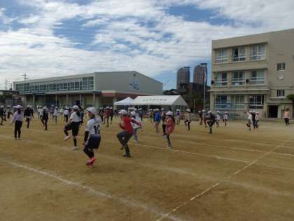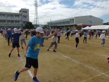 いよいよ明日は体育参観です。明日の流れを確認するために,堺っ子体操→徒競走→団体演技を通していきました。