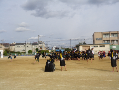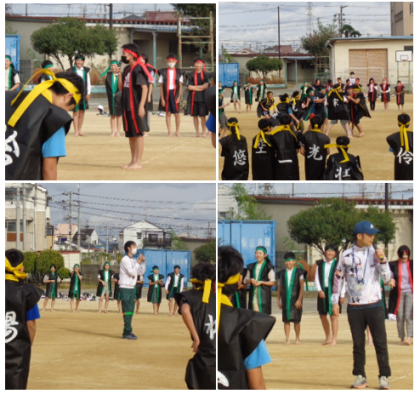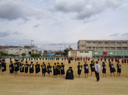 ソーシャルディスタンスで円陣を組み、みんなで気持ちを一つにしました。円陣の中央で実行委員が「がんばるぞー!」と言い、「おー!」と周りの児童が中心に向かって集まり、すごく素敵な光景でした。先生も一言に大盛り上がりです!