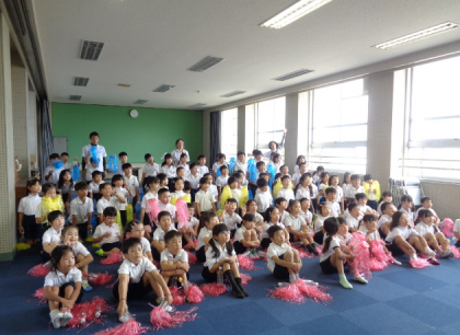多目的室で写真撮影をしました。全員いい表情です。一日よく頑張りましたね。