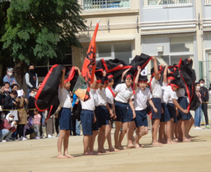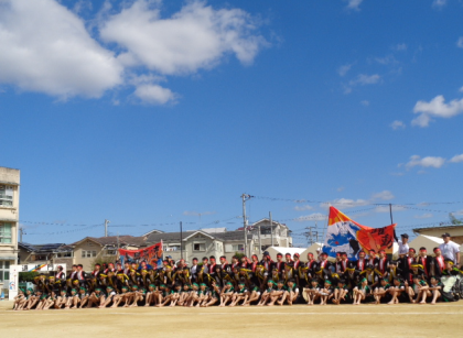 退場前、チームごとに考えた挨拶に、保護者の方も笑顔になっていました。最後は、法被とハチマキを身に着けての集合写真です。