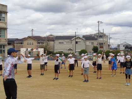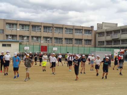 6年生の堺っ子体操の目標は,「スマイル・キュート・パワフル」でした。見ていて感じてもらえたら嬉しいです。(この写真は練習時の写真です。)