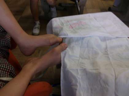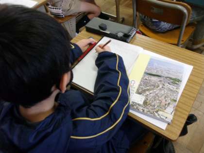 手ぬぐいと自分の持っているハンカチの違いを見つけました。