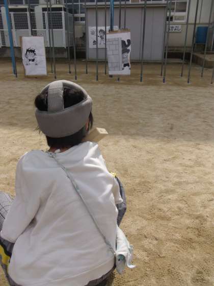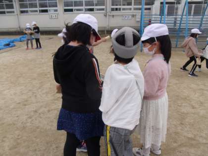光の反射について,運動場に出て鏡を使って調べました。的に向けて太陽の光を当てて気付いたことを友だちと話しました。