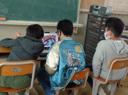 NHKの教材『柿山伏』の狂言を見ました。面白い工夫がいっぱい!とても興味をもって見ていました。