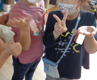 「かわいい〜!」と言いながら、友だちとだんごむしの観察をしていました。