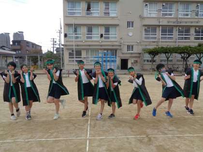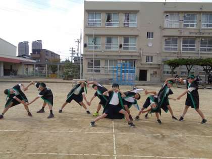昨日の体育では,ソーラン節のはっぴを着て写真を撮りました。