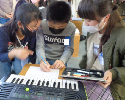 友だちが優しい言葉かけを支えに、頑張る姿が微笑ましいです。音楽のキーボードテストで、スタッカートを頑張ったことを振り返りに書きました。