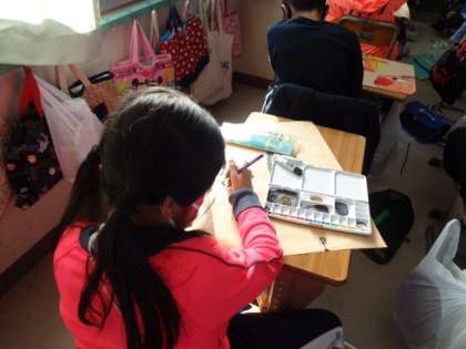 思い思いの絵に色を塗っていました。