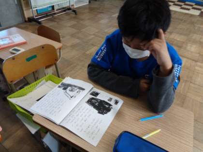 10月の音読の宿題で読んでいた説明文の音読教材を使って読み取りをしています。