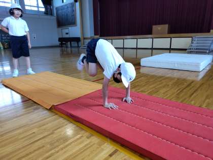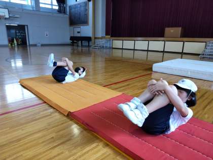 今日のなかよし体育は,マット運動をしました。前転の練習をするために体づくり運動をたくさんしました。