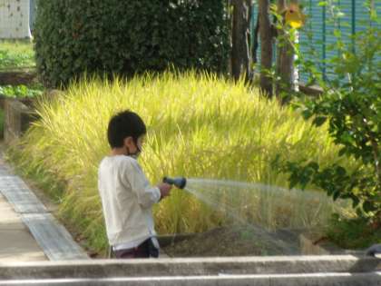 なかよし学級の畑に当番の人が水やりをしてくれていました。