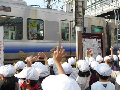 電車を運転している車掌さんの姿を見ることもできました。売られているものにも興味津々で,ふりかえりではお店の中の様子まで詳しく書くことができました。