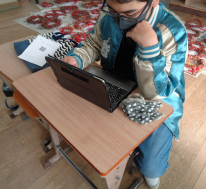 QRコードを読み取り、タブレットを用いて回答しました。
