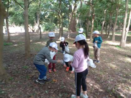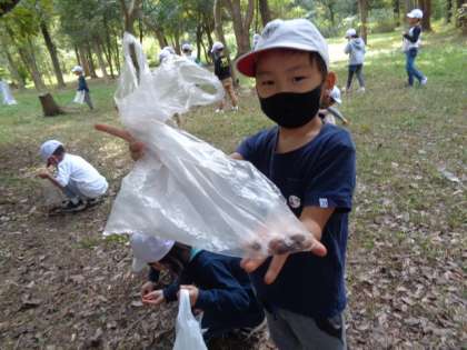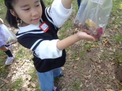 大泉緑地に到着後,どんぐりひろいをしました。