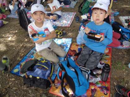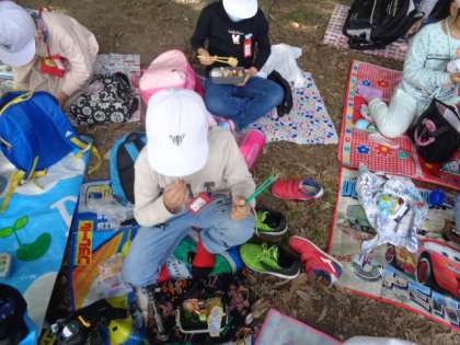 どんぐりひろいの後は待ちに待ったお弁当です。